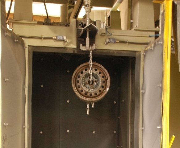 H9x14/3WX1M is an automatic shot blasting machine with a Y type suspended conveyor belt with two suspensors, each bearing up to 500 kg.