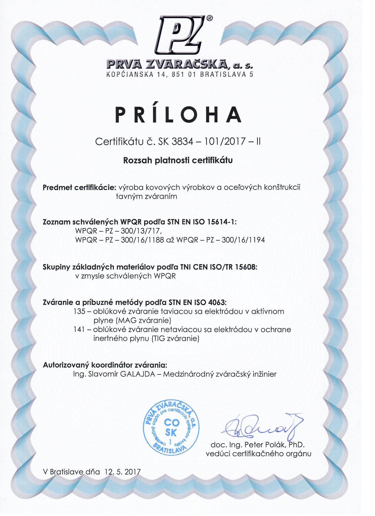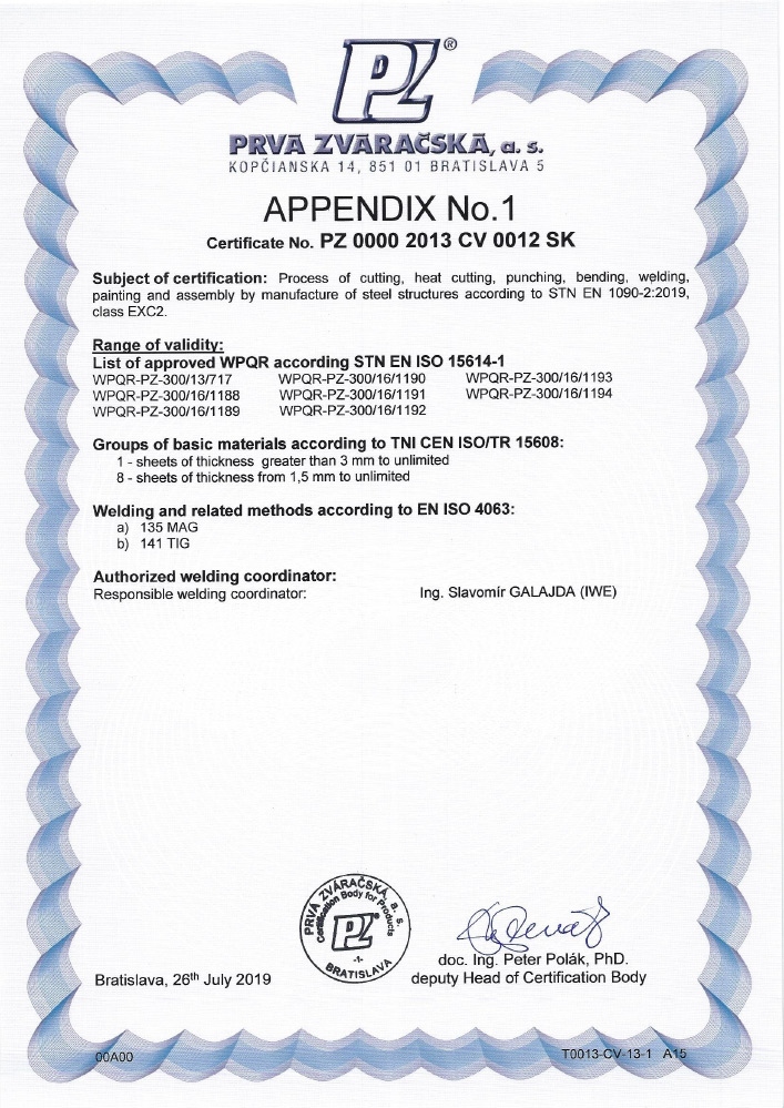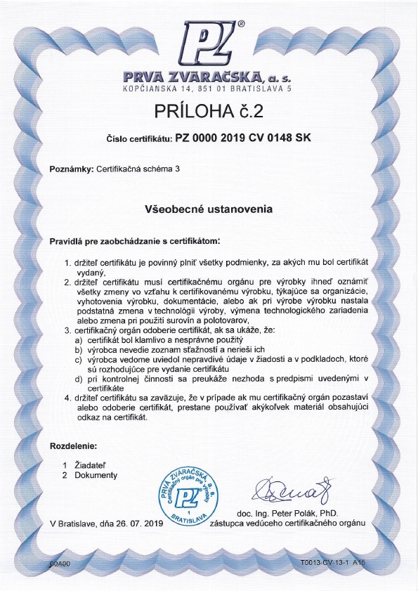 Lumasek, s.r.o. CE EN 1090 - príloha č.2 Certifikáty